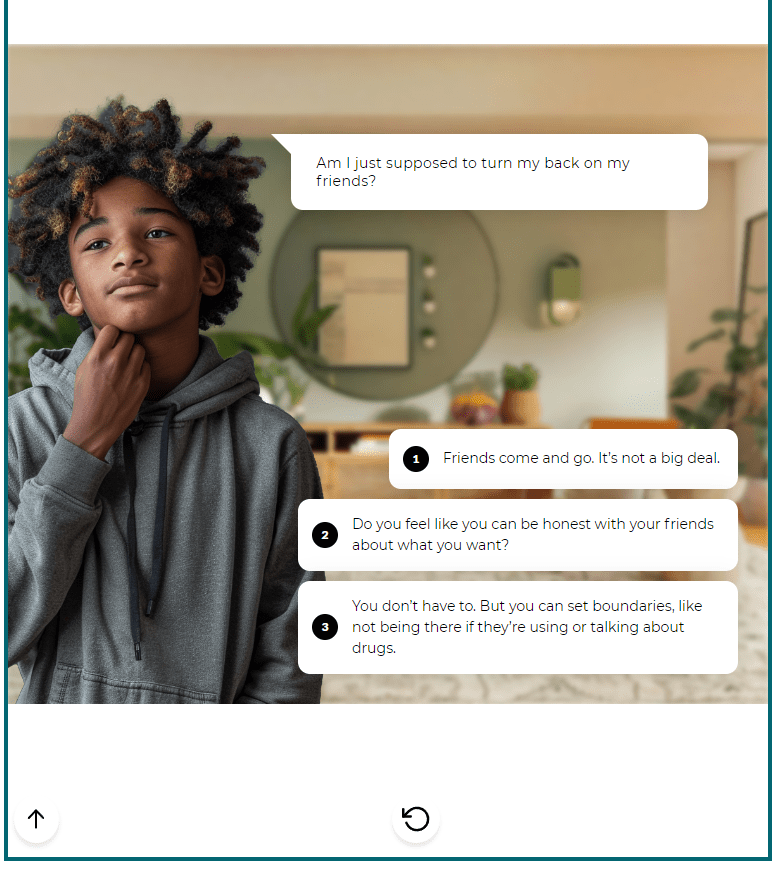 Interactive Scenarios (Song for Charlie) Aggregating feedback from a team of subject matter experts, I created scenario-based microlearning modules to help parents have productive drug-related conversations with their teen children. https://www.thenewdrugtalk.org/scenarios Related